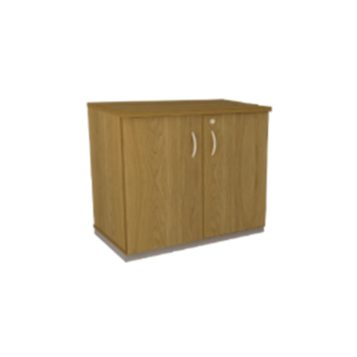 Low cabinet measuring 800 × 500 × 740 mm, featuring a body, hinged doors, and one internal shelf in 18 mm woodgrain MDP laminate, with a smooth 25 mm MDP laminated top, metallic baseboard, and adjustable leveling feet.